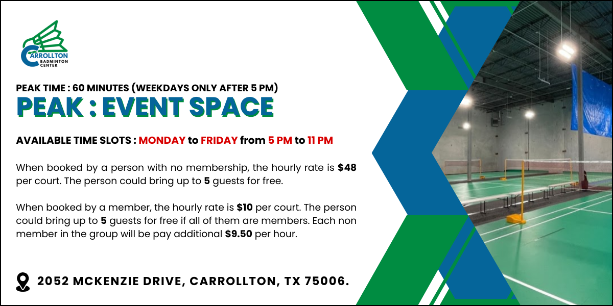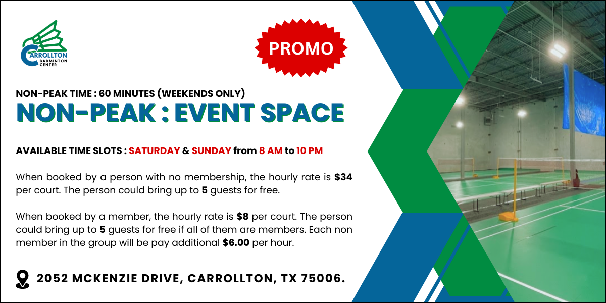 - Refund must be requested in writing by emailing to info@mckinneybadmintoncenter.com or info@carrolltonbadmintoncenter.com